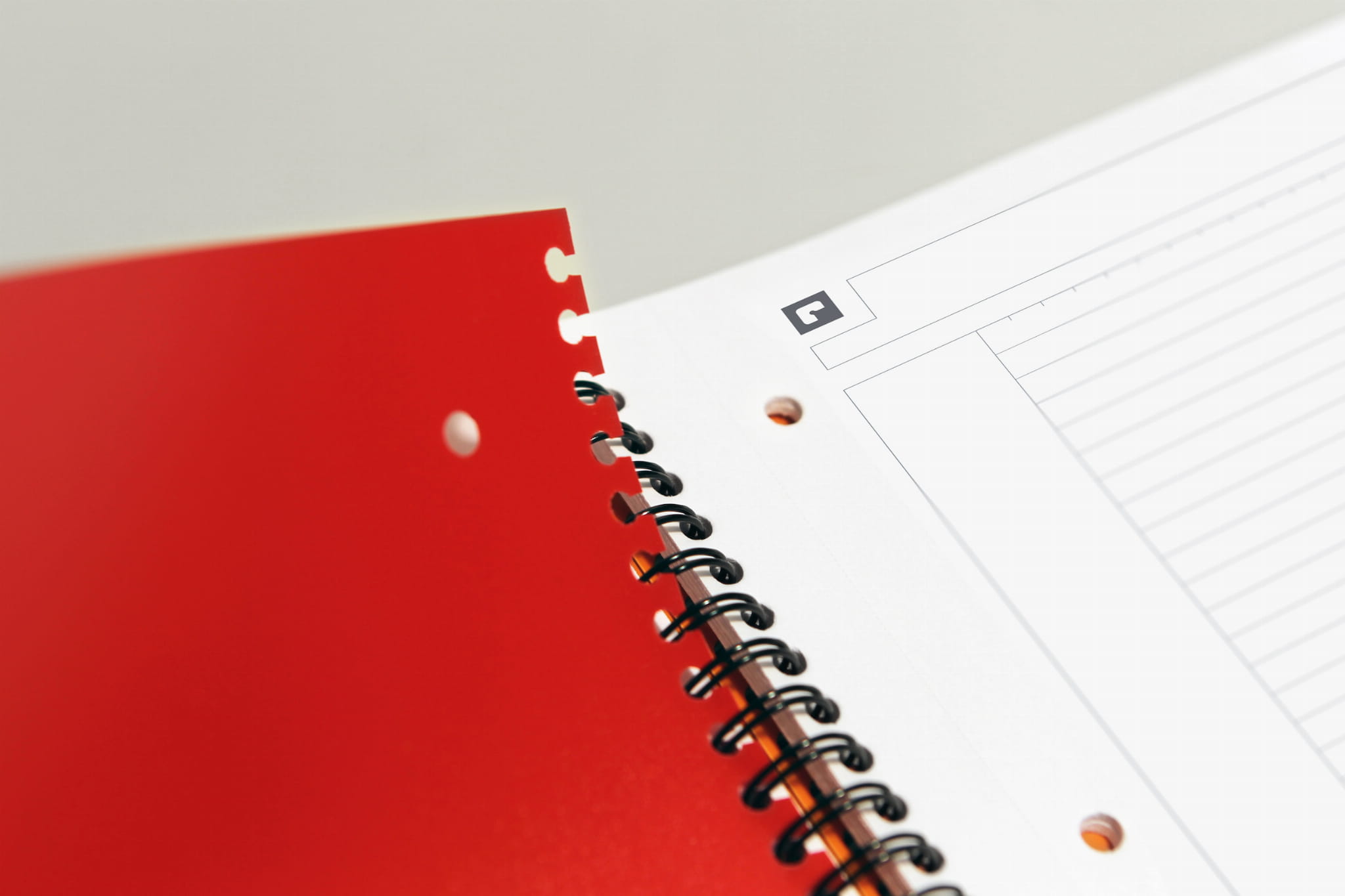 - Czarna, podwójna spirala zapewnia, że notatnik leży perfekcyjnie płasko po otwarciu. Wodoodporna i wytrzymała okładka z nieprzejrzystego polipropylenu.