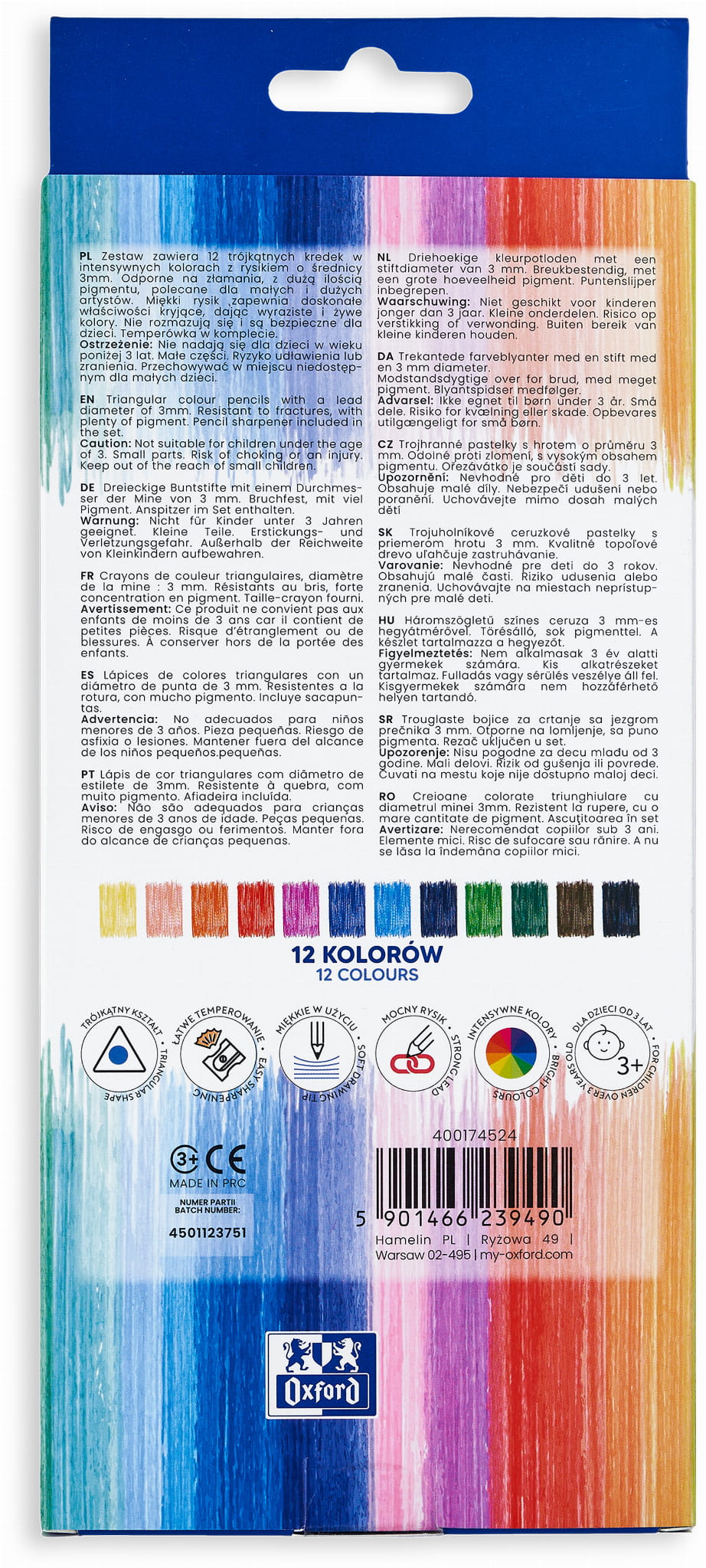 OXFORD KREDKI OŁÓWKOWE REGULAR 12 KOLORÓW