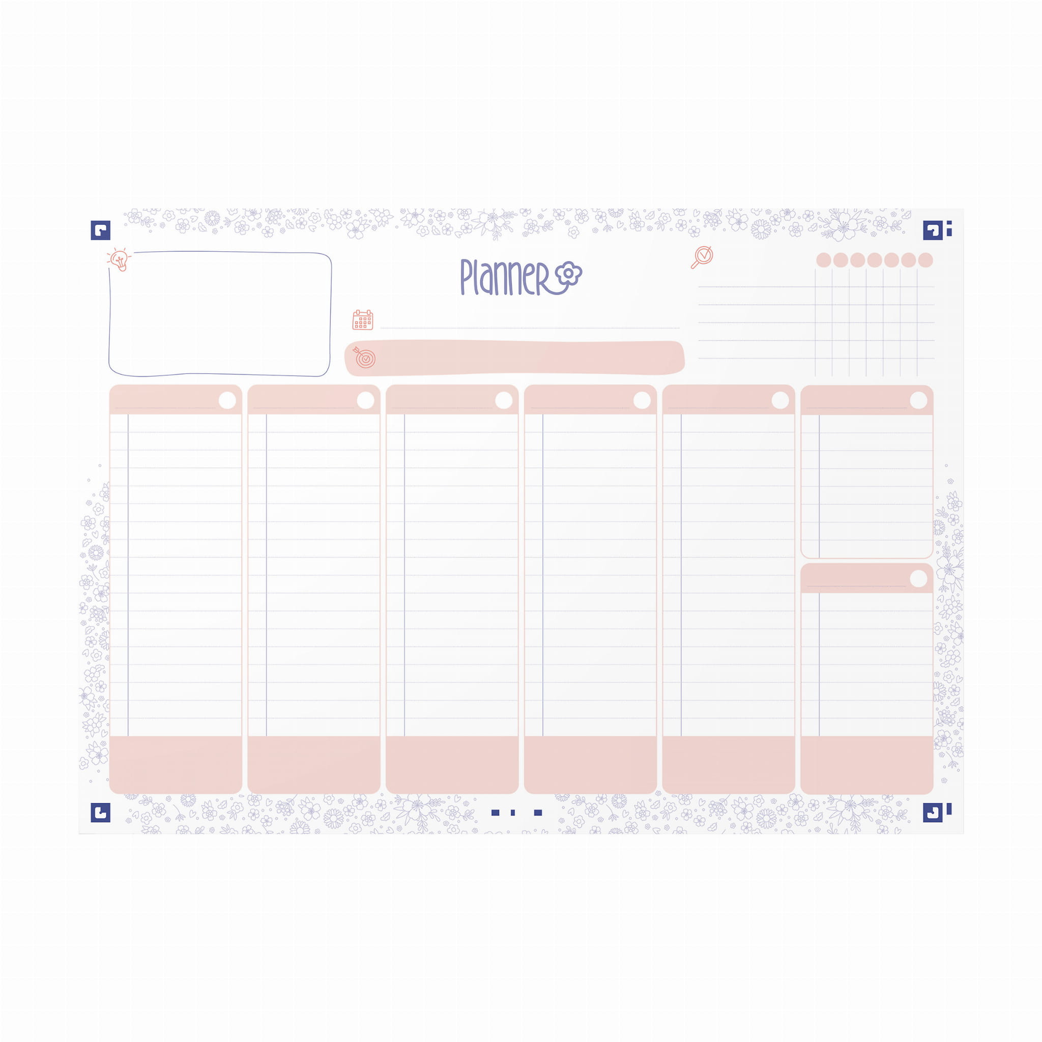 - Specjalnie zaprojektowany układ stron umożliwia zaplanowanie zadań na każdy tydzień oraz personalizację nagłówków, dzięki czemu planer stanie się Twoim indywidualnym narzędziem