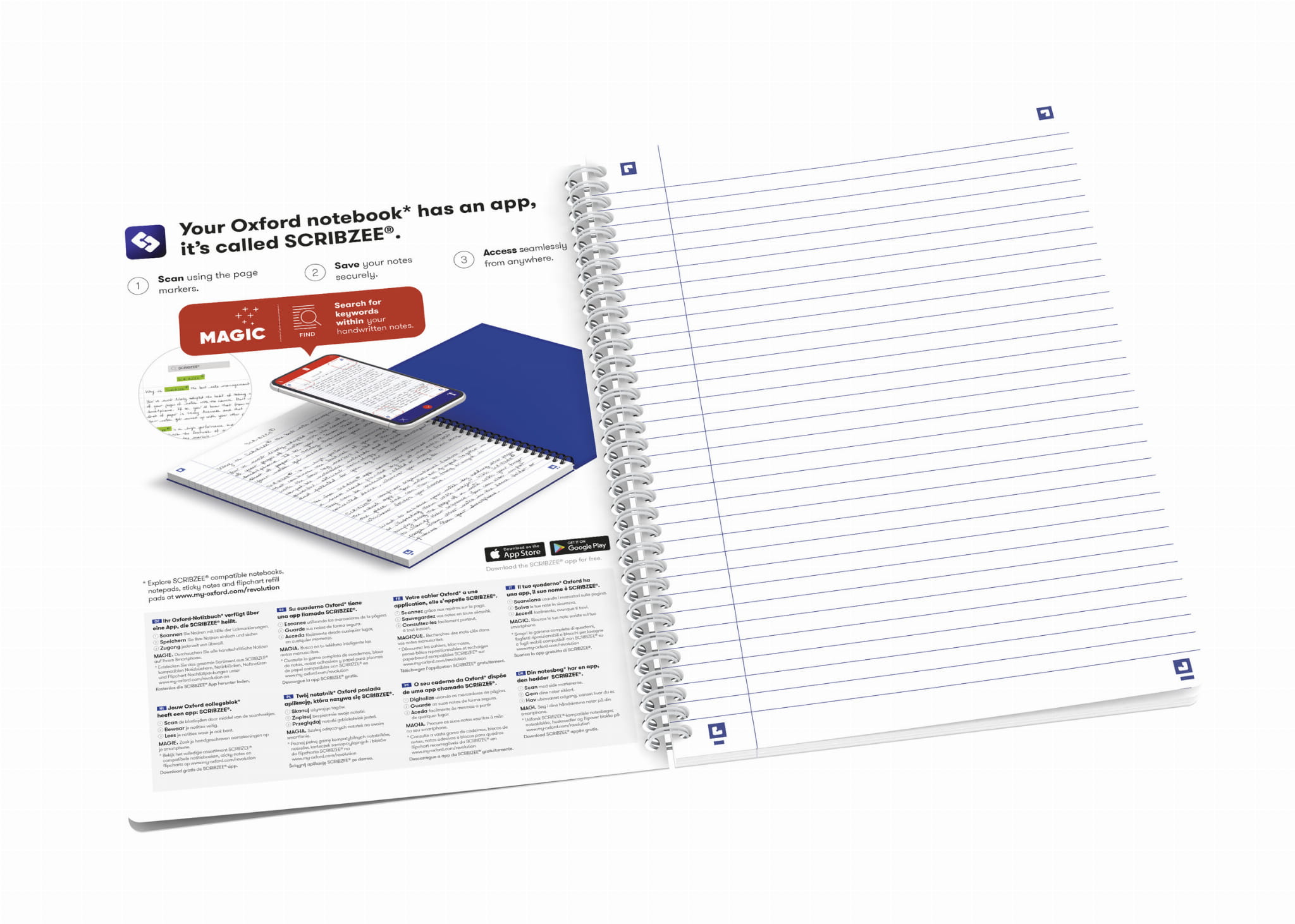 - inteligentna liniatura - tagi w narożnikach stron umożliwiają skanowanie notatek za pomocą aplikacji Scribzee®